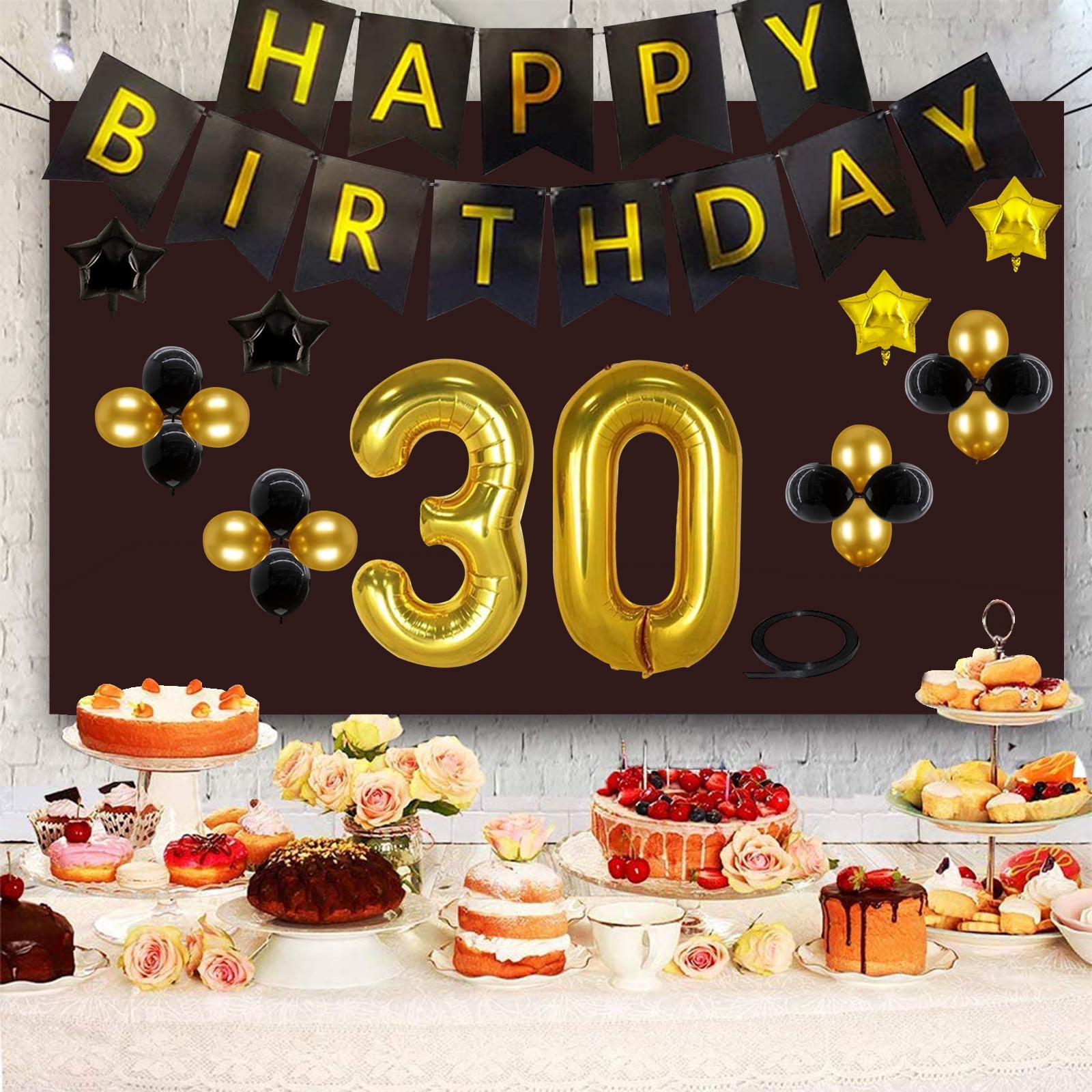 Men Women Birthday Decorations Set 24 Pack Gold Number Balloon 30th Happy Birthday Banner Latex Black Golden Balloons Great For 30 Years Old Birthday Party Supplies Walmart Com